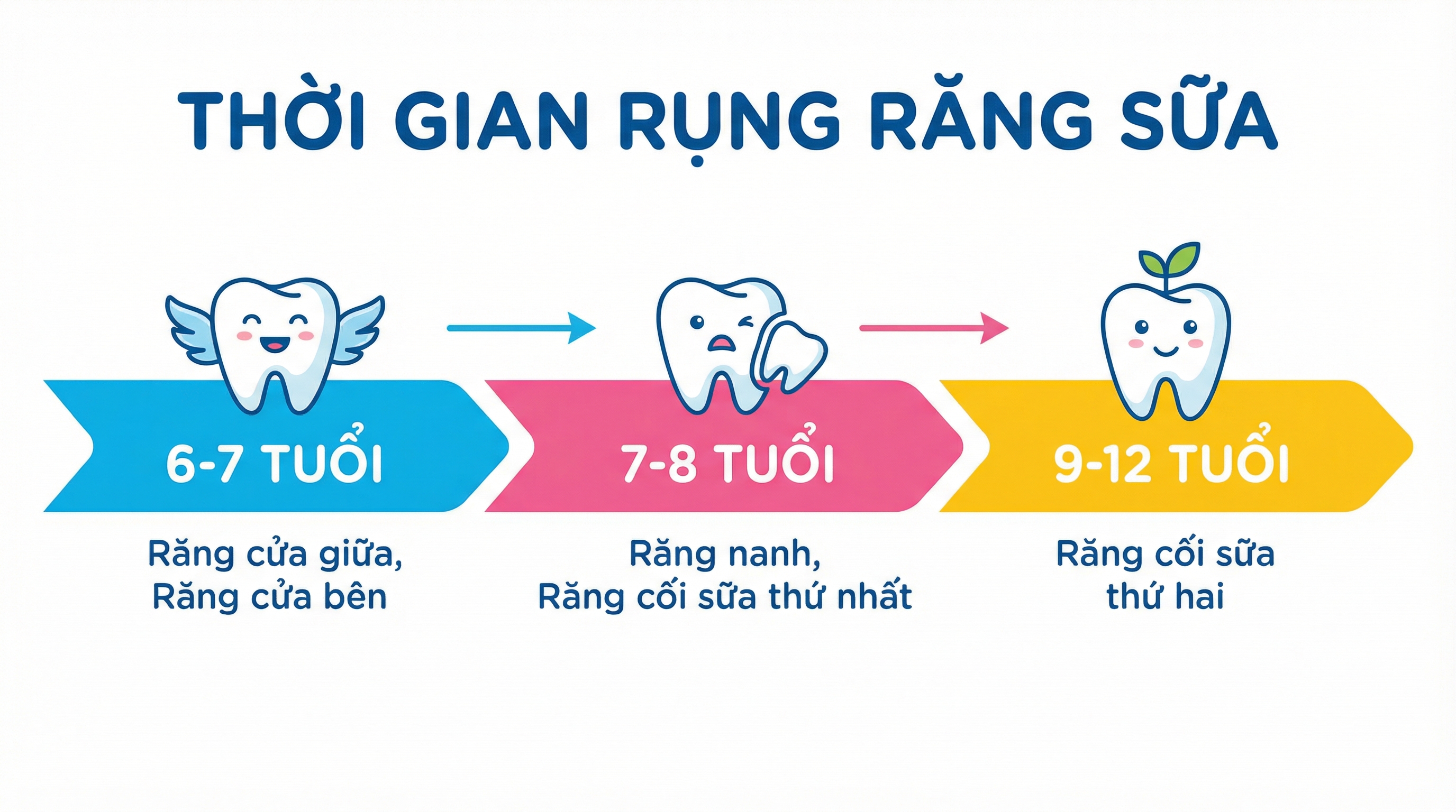 | Răng nanh | 9 – 10 tuổi | 11 – 12 tuổi |